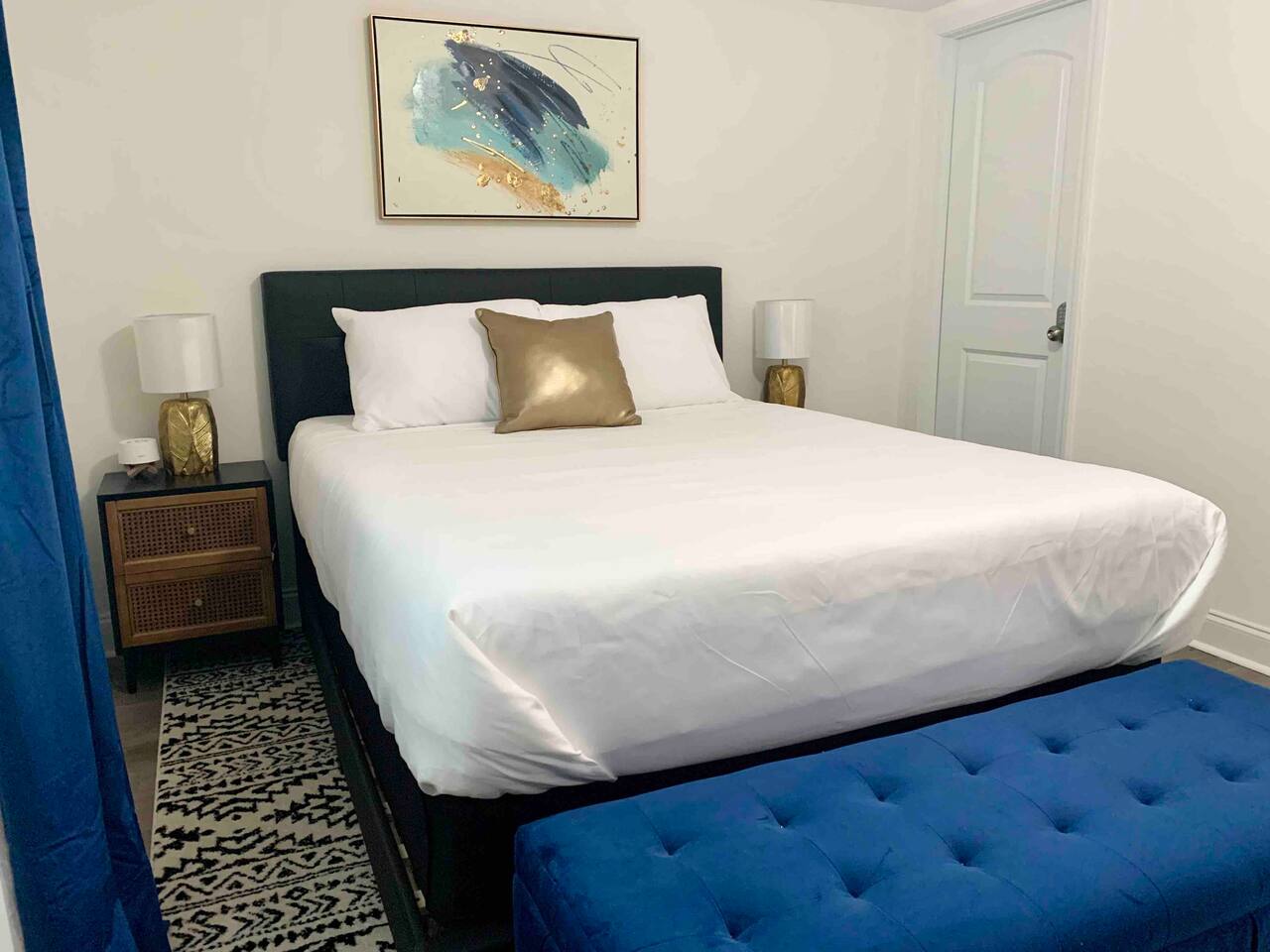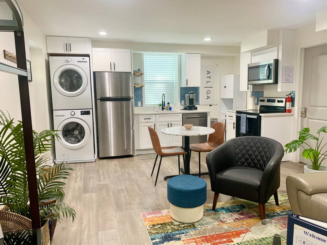 Cleaning fee guarantees: all surfaces are sanitized & all linens are washed between guests TV SERVICES - No cable. Smart TV streaming services only (guests must use personal login credentials) Private entry and complete privacy (Residents live upstairs, pitter patter is kept to a minimum, complimentary white noise machine & ear plugs provided if needed) BEDROOM 1: Queen bed, FireTV, white noise machine, ceiling fan BEDROOM 2: Queen bed, FireTV, white noise machine, ceiling fan LIVING ROOM: sofa, FireTV with streaming apps, 1 sitting chair KITCHEN: Full minimalist kitchen, full size refrigerator, stove, dishwasher LAUNDRY: In-unit washer & dryer BATHROOM: 1 bathroom w/ shower, towels, hair dryer, soap, shampoo, conditioner, and upflush toilet system LINENS: $45 linen convenience fee per ruined linen (bedding & bath linens). Courtesy make-up wipes and dark towels provided PETS - we are happy to host one (1) hypoallergenic DOG 40lbs or smaller for a $95 pet fee (no other animal species puppies, or incontinent dogs). Guests with unauthorized pets will be asked to leave with no refund. If your dog is a barker and causes disturbance to neighbors, you will be asked to end your stay. Dog must be up-to-date on vaccinations & flea/tick treatments, potty trained for outdoors (no puppy pads allowed) . Must stay off furniture and be leashed outdoors. Must not be left unattended (if left alone, must be crated). Owners will bag and dispose of poop inside & outside of fence. OUTSIDE: entrance is a private door that lets out to a paved patio-driveway followed by a yard of emerald sea of grass. Wooded tree canopies in the summer and Amber, Auburn, Crimson foliage in the fall. Short drive to many restaurants, shopping, historic landmarks, & universities - included but not limited to: •Westside Park •Mercedes Benz Stadium - 4 miles •State Farm Arena - 4 miles •Georgia World Congress Center - 4 miles •Atlantic Station - 4.5 miles •Lenox Square Mall •The Martin Luther King Jr. Historic Birth Home •Georgia Aquarium - 4 miles •World of Coke - 4 miles •The Atlanta University Center - 3.5 miles •Georgia State University - 4.5 miles •Georgia Tech University - 3.5 miles •The Battery (ATL Braves) - 11 miles