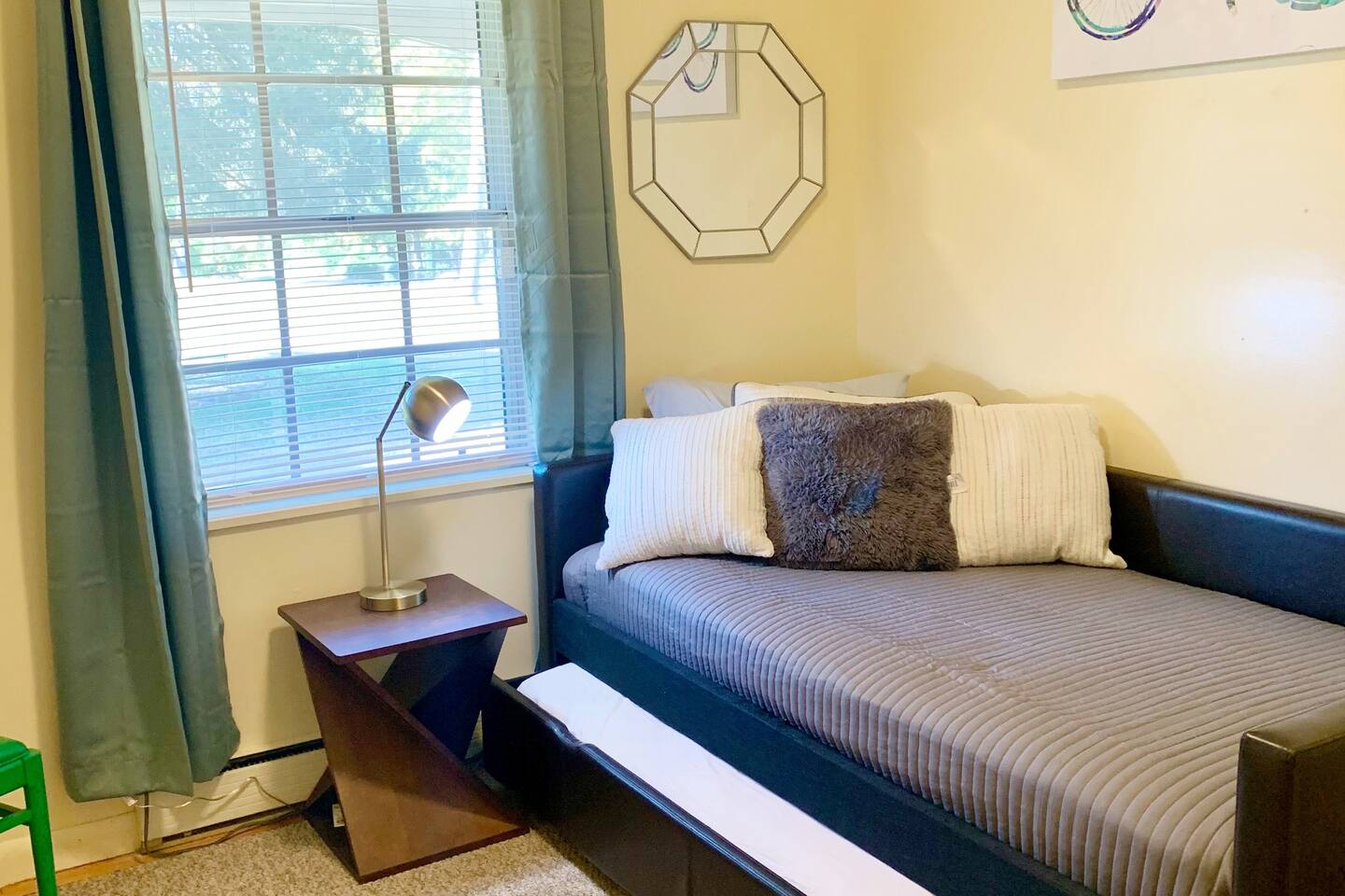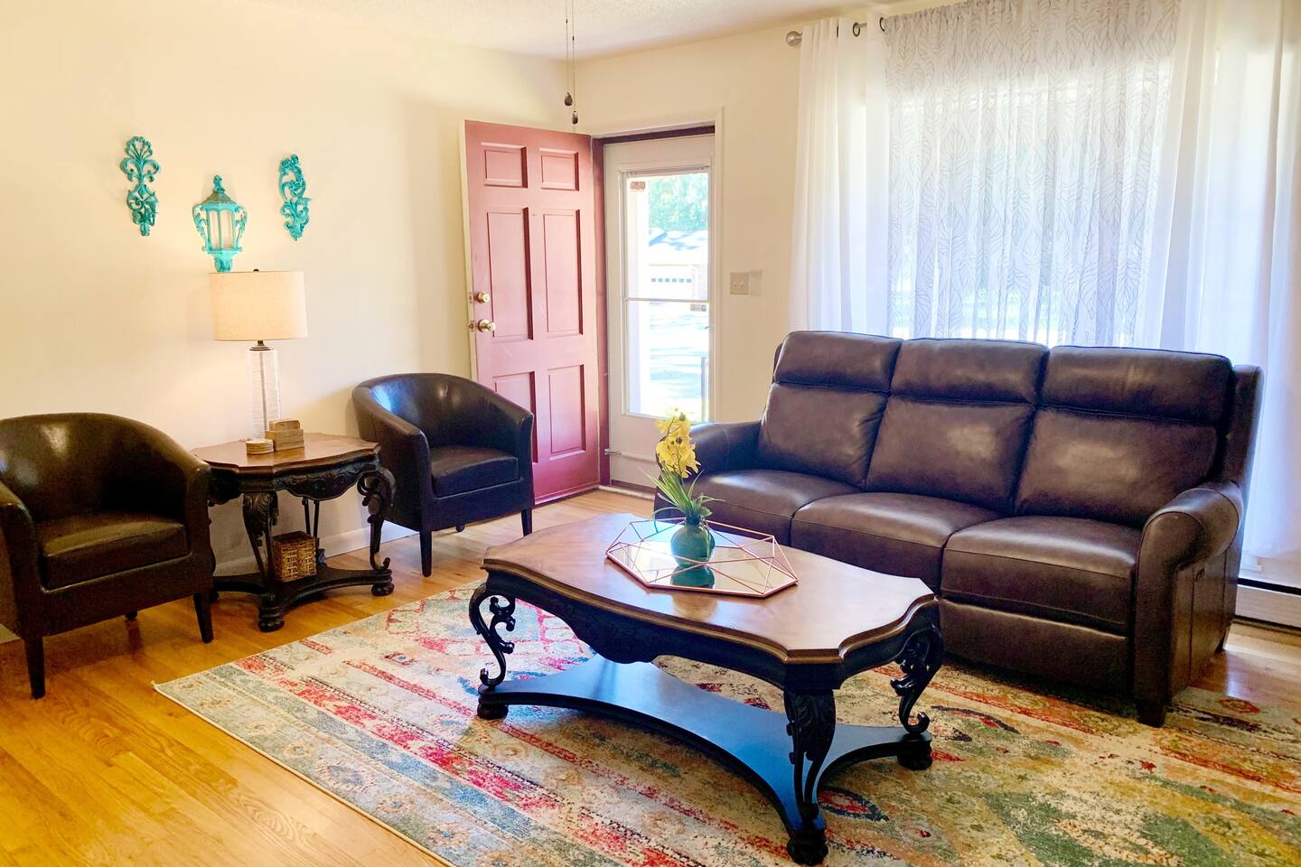 Please remember you’re staying in a person’s house, not a hotel. Please treat our home with respect just as the previous guests have. FAQs: How old do I have to be to book a stay? -All guests must be 25+ except for children with parents. Can I check-in early? -Our ability to accommodate an early check-in depends on whether there is another guest checking out the day of your arrival and our cleaner's schedule. It is not guaranteed, but we welcome you to inquire. -If you arrive early or depart late, there will be a $50 charge. Can I drop off my luggage? -At this time we, we are unable to accommodate luggage drop-off. Do I need to bring household goods? -We provide a start of supplies (e.g., toilet paper, paper towels). You may need to buy more if you’re booking an extended stay. Do you offer discounts? -We offer weekly discounts that will be automatically applied. Do you offer refunds for natural disasters? -No refunds for weather/natural disasters/ power outages/acts of God/other things that are beyond our control What if I have a maintenance issue during my stay? -If any problems arise, we will do our best to take action ASAP, but please note nobody is living onsite 24/7. For non-emergency issues, we do not send maintenance to the property during your stay, only after you depart. Do you allow 1-night stays -Our ability to accommodate 1-night stays is a case-by-case basis due to our cleaner's schedule. We welcome you to inquire. Do you allow mid-term stays (28+ days)? -Yes, we do offer mid-term stays in partnership with Mae-Lee Hospitality LLC. Midterm stays require a lease agreement that must be signed by all tenants age 18+. What kind of lot is the house located on? -The house has a large yard & is located next door to two other occupied homes.